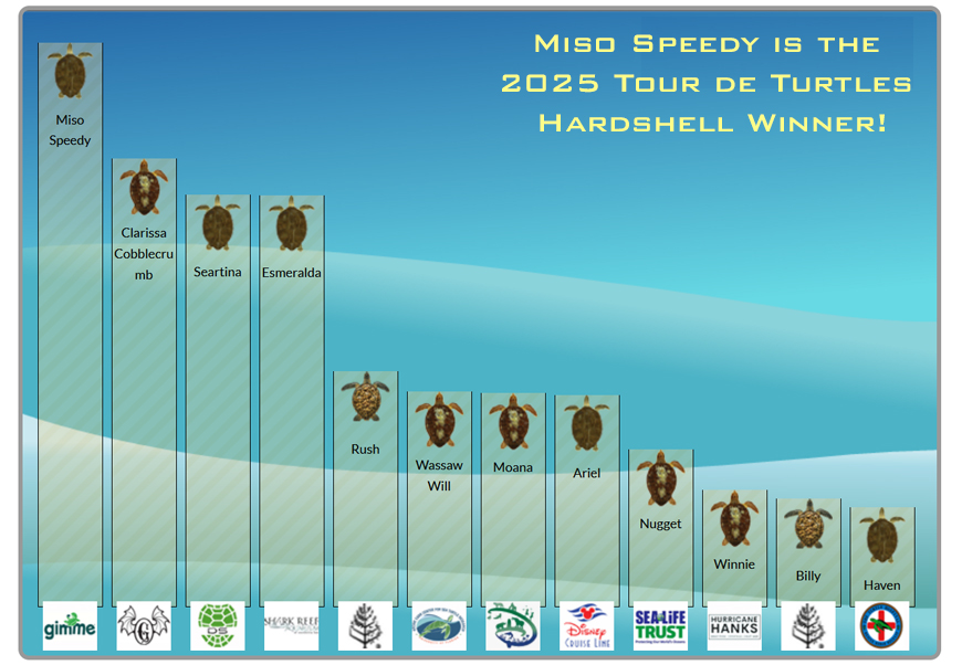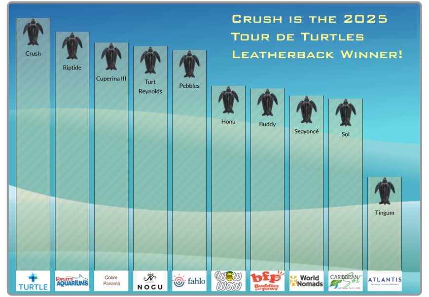 Join our tracked turtles at the Tour de Turtles finish line by participating in Sea Turtle Conservancy’s 6th Annual 5K/10K Virtual Race from October 30 – November 2, 2025. Click here for more info!
